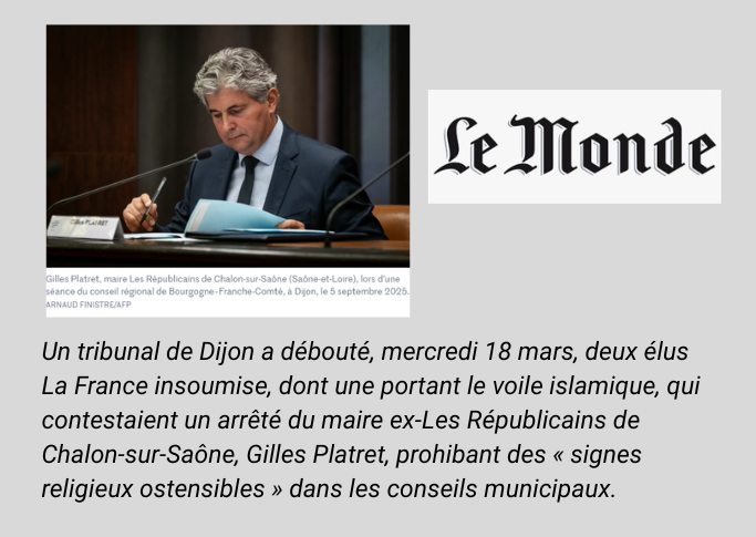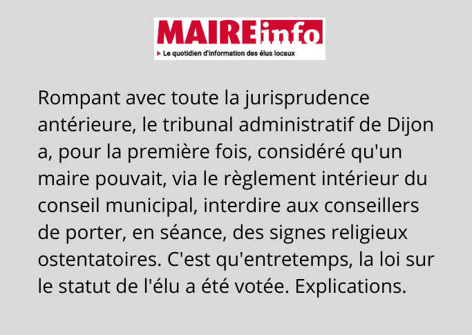Pour la première fois, un tribunal admet l’interdiction des signes religieux pour les membres d’un conseil municipal