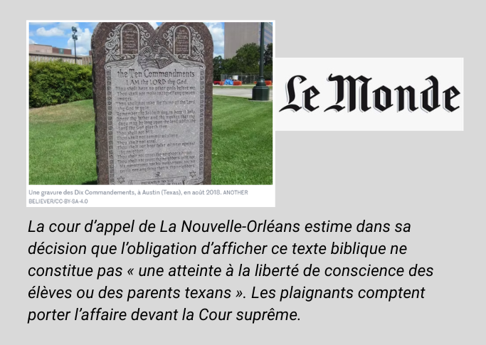 International. Le Texas autorisé à imposer l’affichage des Dix Commandements dans les écoles publiques